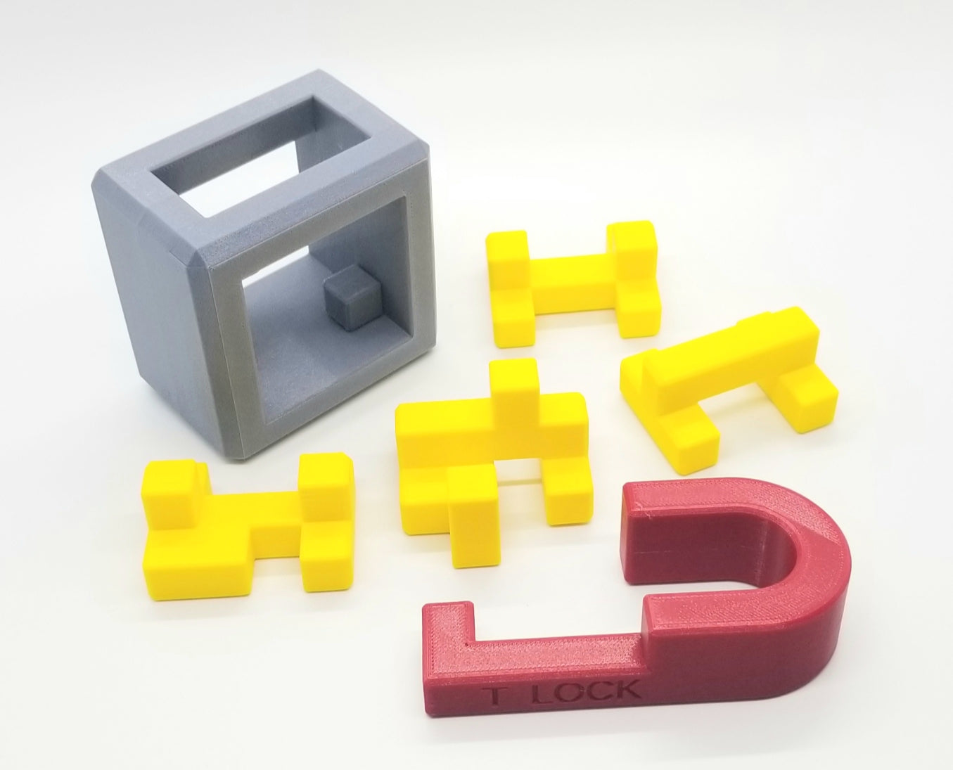 T Lock is a 3D printed puzzle lock that I designed. It was inspired by some of the lock puzzles I have released that were designed by Chris Lohe.